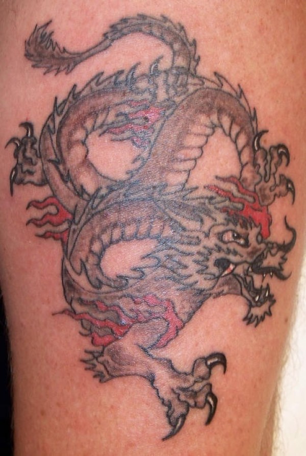 龙纹身手稿_一组老传统黑灰龙手稿纹身图案