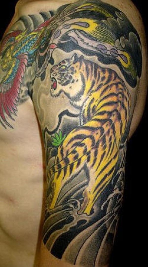 大臂中国风上山虎彩绘纹身图案