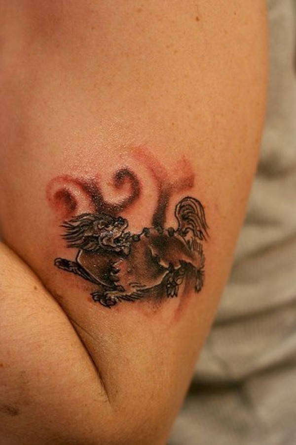 手臂亚洲风格小狮子纹身图案