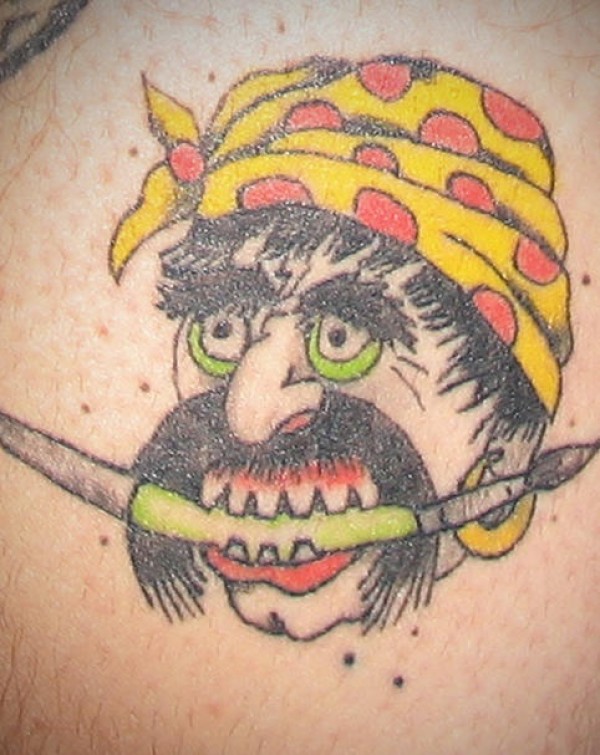 彩色的亚洲海盗头像纹身图案
