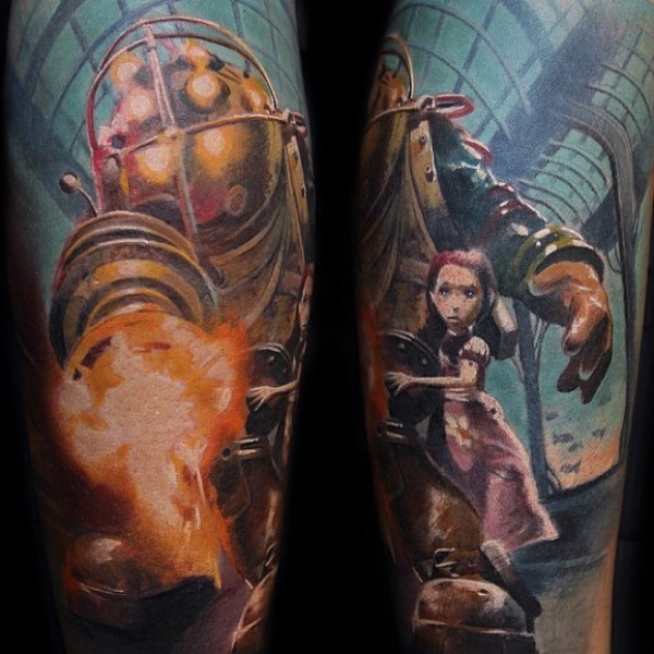 手臂彩色鲜艳的著名卡通英雄纹身图案
