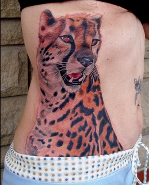 腰部彩色的猎豹纹身图案