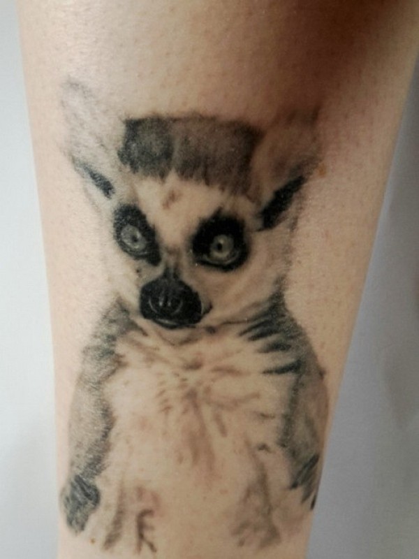 小腿写实的狐猴纹身图案