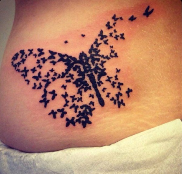 腹部小蝴蝶组合大蝴蝶黑色纹身图案