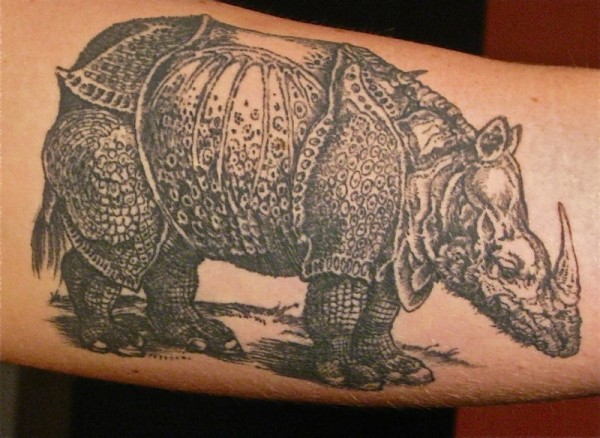 手臂写实的盔甲犀牛纹身图案