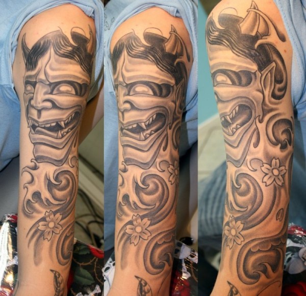 手臂日本般若樱花纹身图案