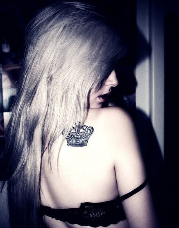 女孩背部黑色的小皇冠纹身图案