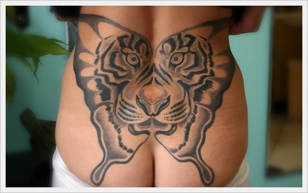 腰部蝴蝶转化的老虎纹身图案