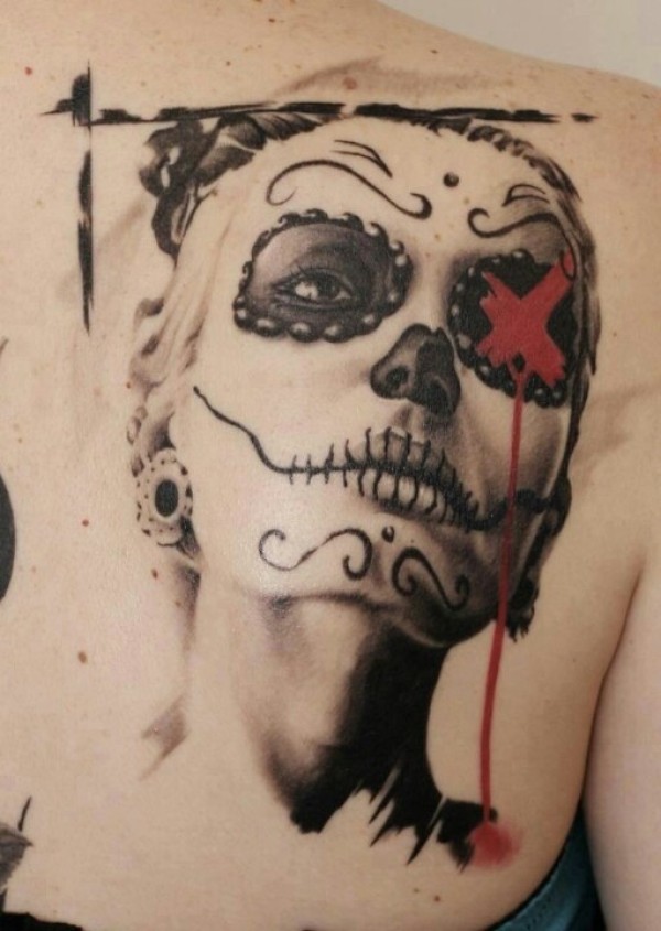 背部new school死亡女郎纹身图案