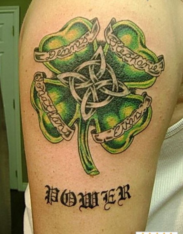 大臂爱尔兰四叶草和字符彩绘纹身图案
