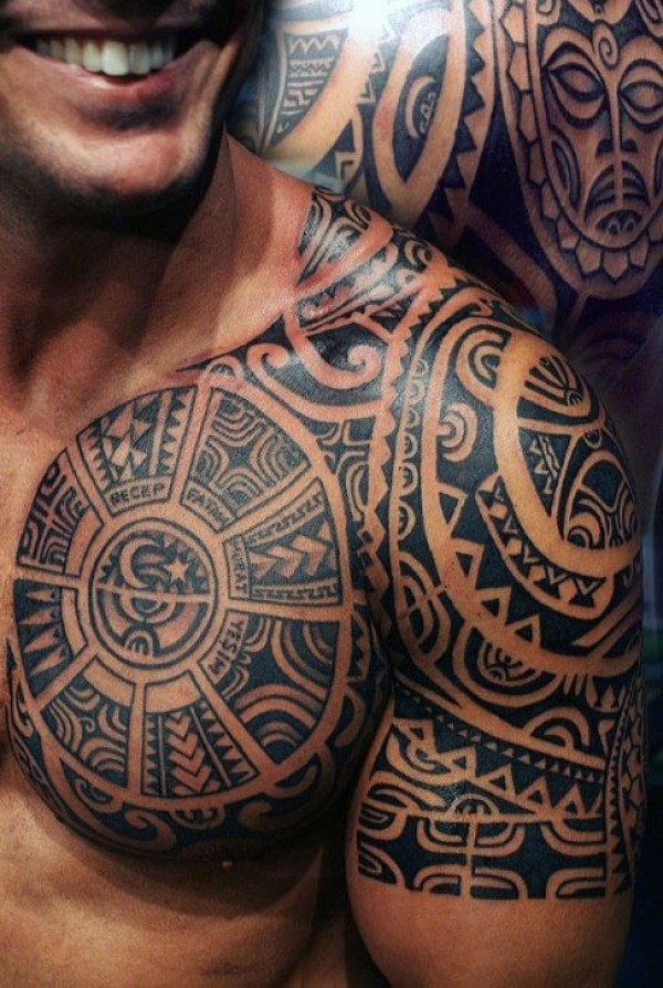半甲华丽的黑色阿兹特克图腾纹身图案