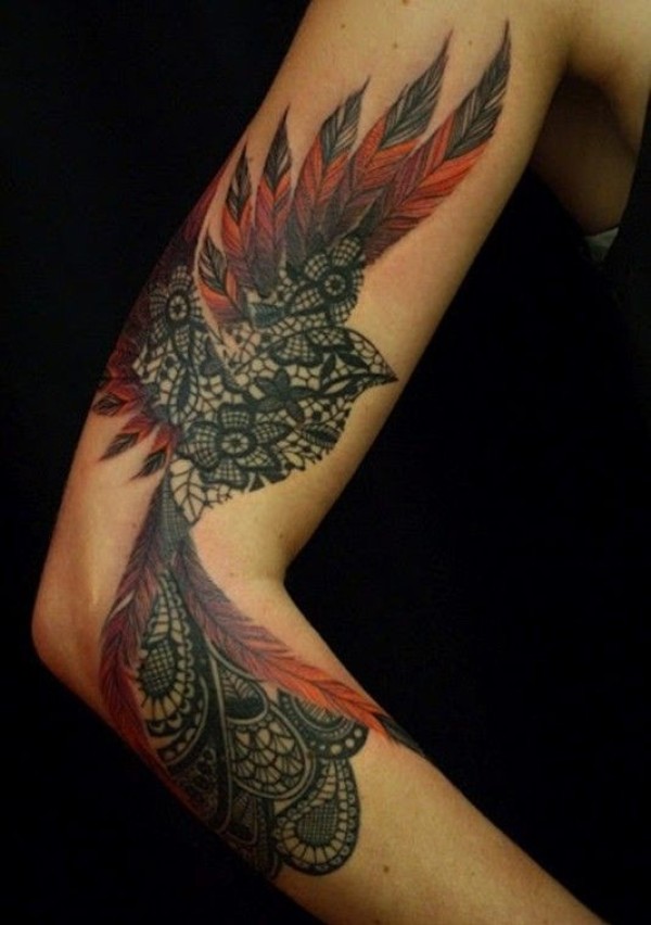 手臂令人敬畏的彩色图腾鸟纹身图案