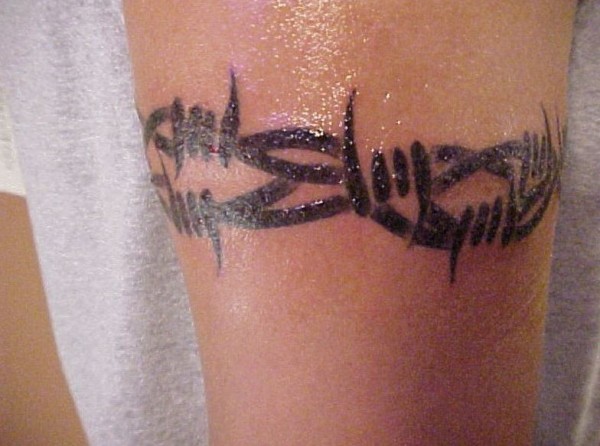 手臂黑色线条铁丝网纹身图案