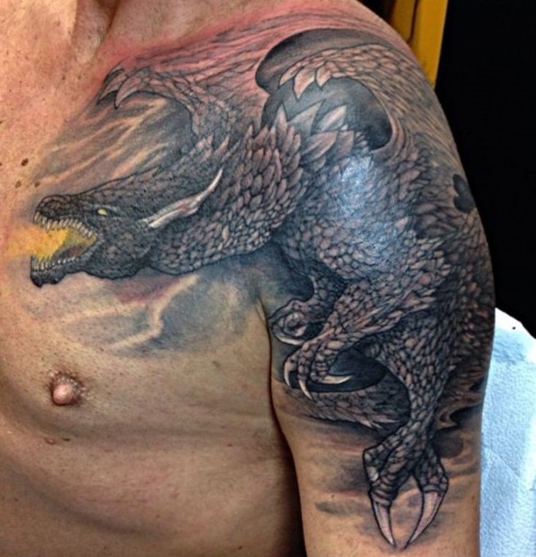 龙纹身手稿_一组老传统黑灰龙手稿纹身图案