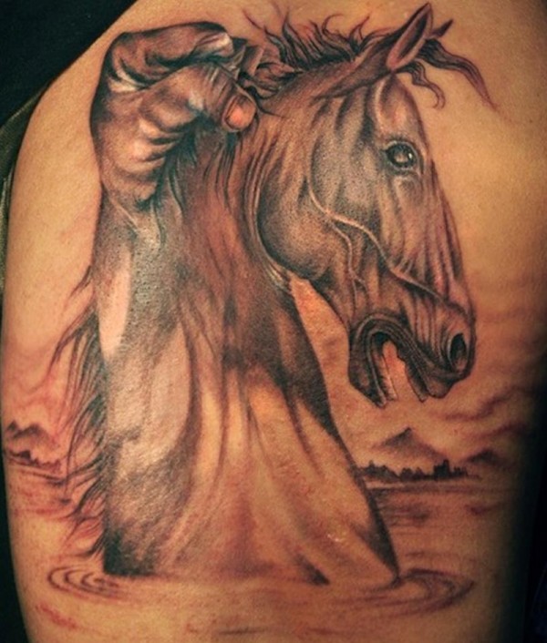个性独特的马和手纹身图案