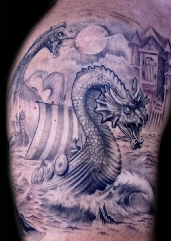 龙纹身手稿_一组老传统黑灰龙手稿纹身图案