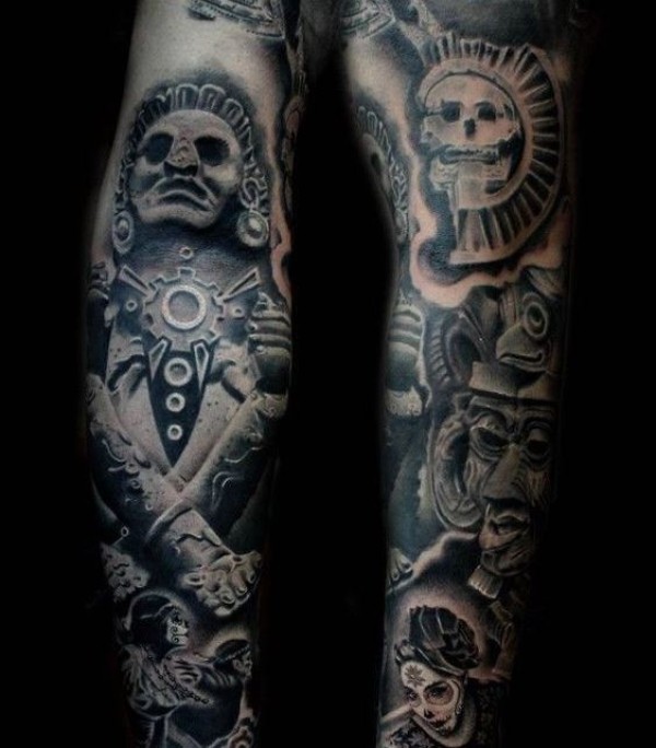 手臂阿兹特克华丽的石像纹身图案