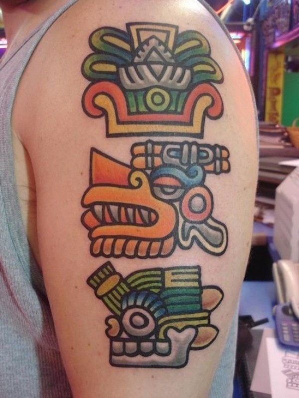 精彩的阿兹特克符号彩绘手臂纹身图案