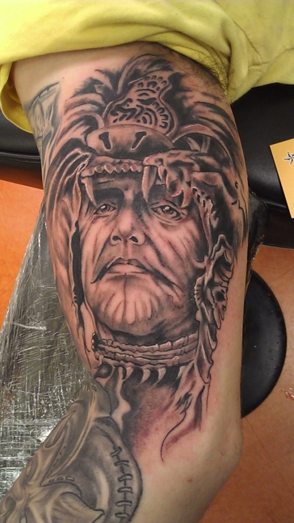 手臂辉煌的阿兹特克萨满画像纹身图案