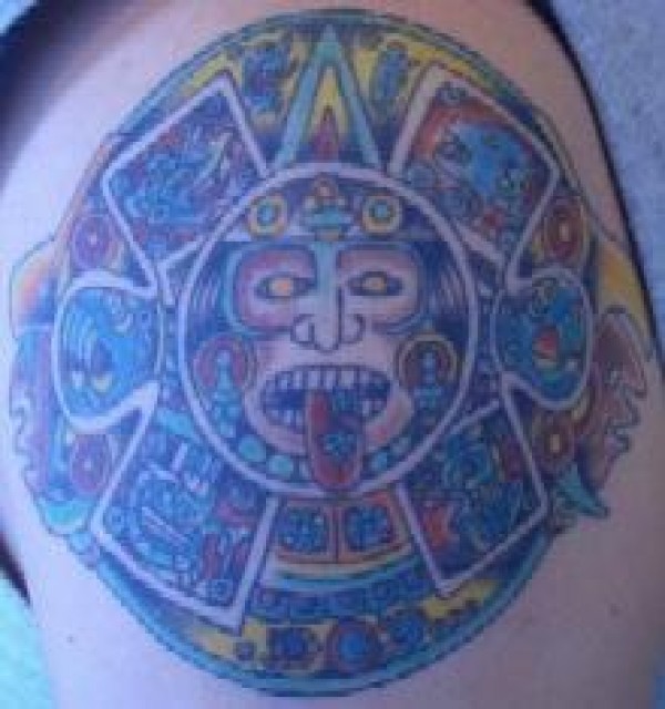 彩绘阿兹特克太阳石纹身图案