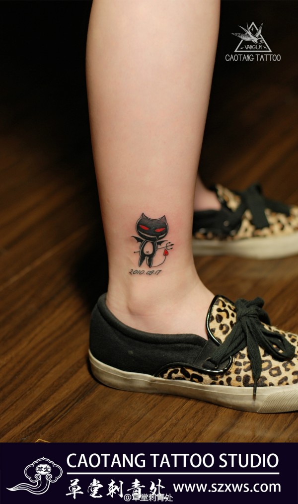 纹身就要小小的,腿部小恶魔与手腕篮球刺青作品。