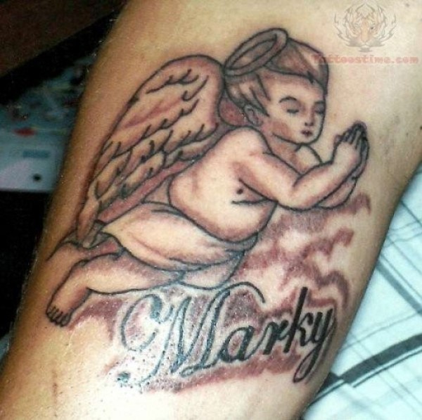 小天使婴儿和字母纪念纹身图案
