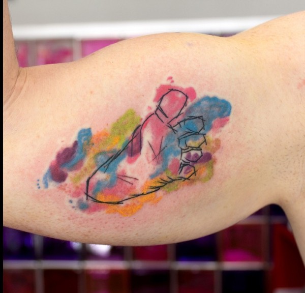 大臂水彩画风格的彩色婴儿足印纹身图案
