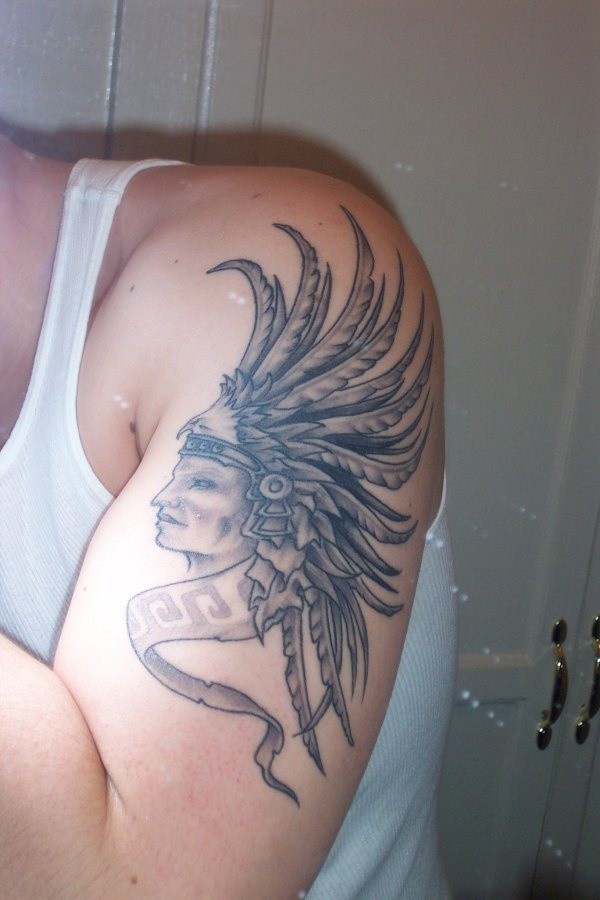 大臂阿兹特克武士羽毛纹身图案