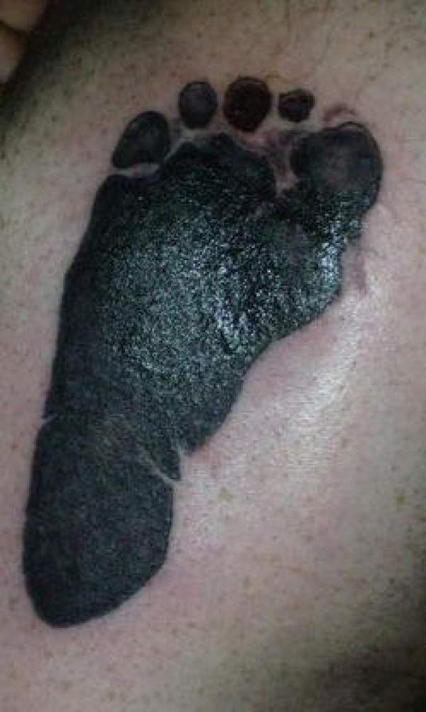 背部孩子的脚印黑色纹身图案