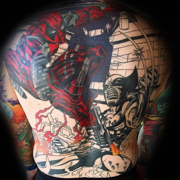 背部彩绘的各种X战警英雄死侍纹身图案