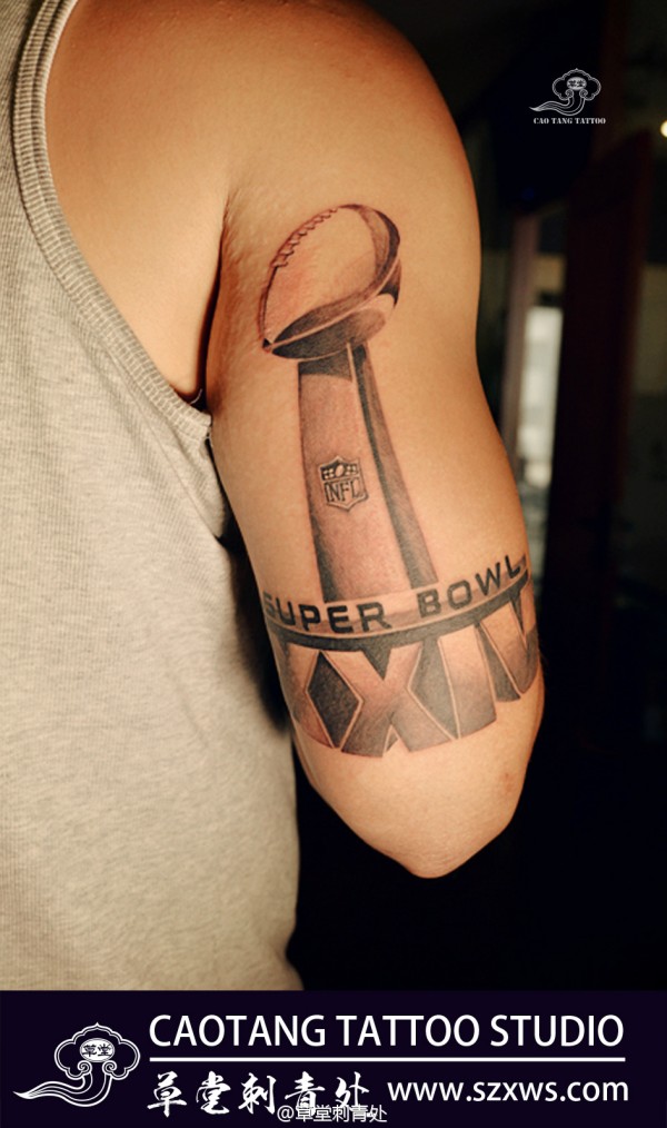 手臂橄榄球刺青,帅气又霸气。