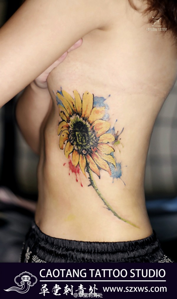 草图感向日葵纹身图案_植物纹身图案大全_纹身图吧