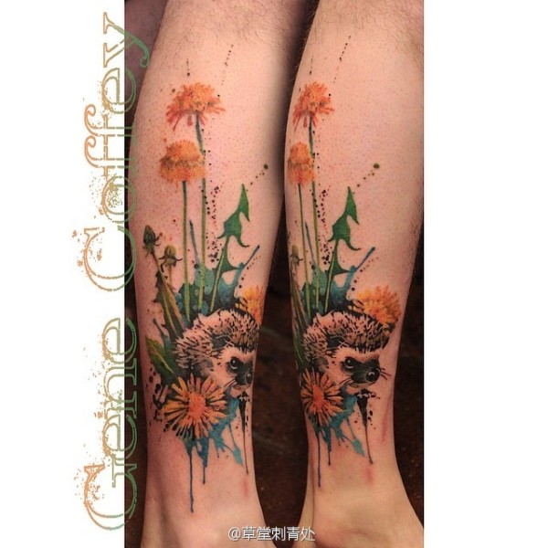 帅气的彩色花腿纹身水墨画纹身图案