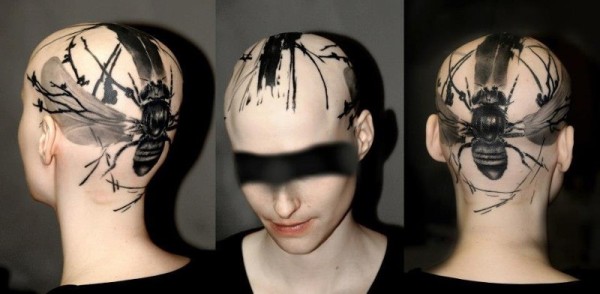 头部写实风格的黑色昆虫纹身图案