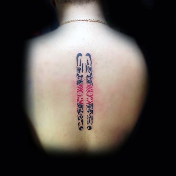 背部黑色和红色部落装饰纹身图案