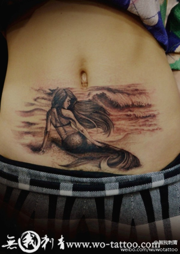 遮盖腹部疤痕 妩媚的美人鱼纹身