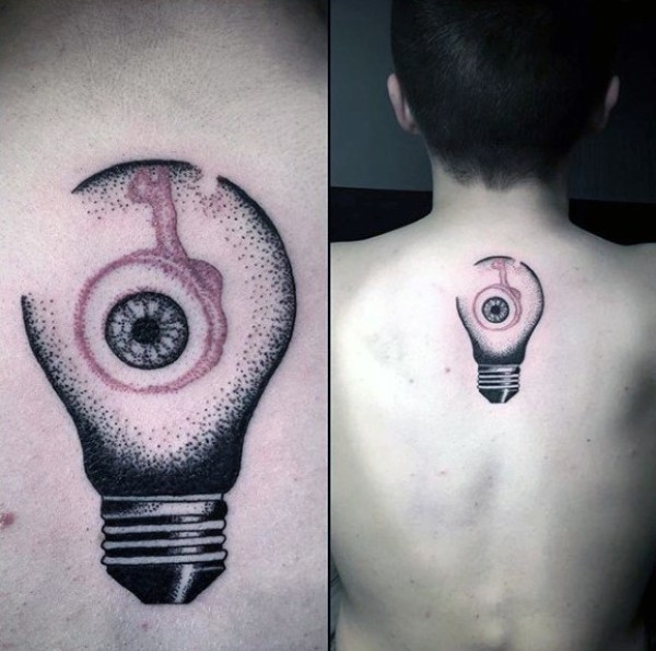 背部中等大小的彩色点刺灯泡与眼睛纹身图案