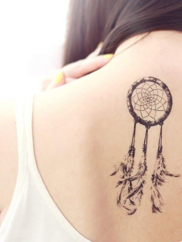 黑白的捕梦网背部纹身图案