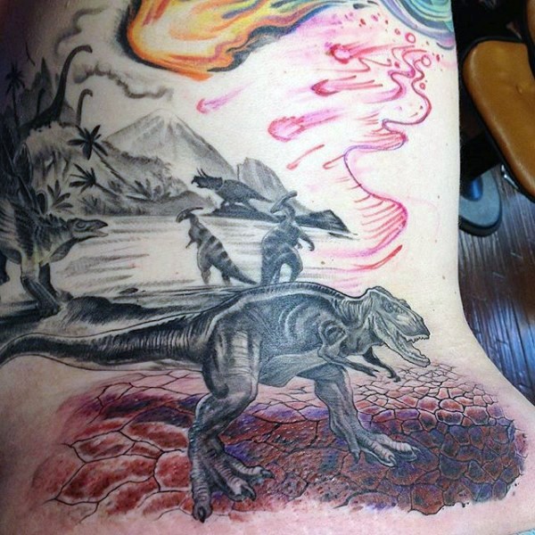 背部彩色的说明式恐龙纹身图案