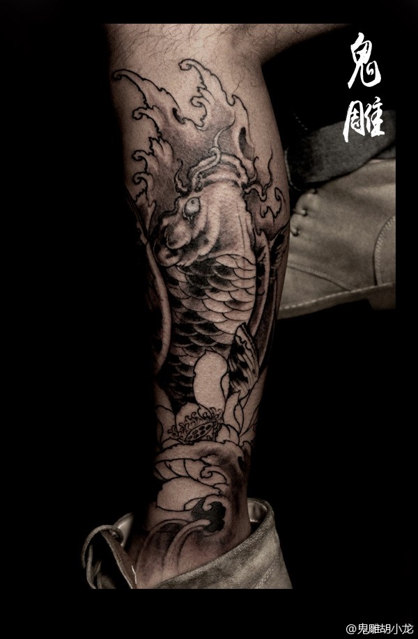 传统鲤鱼花小腿纹身_腿部纹身图案大全_纹身图吧