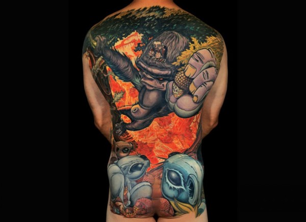 满背幻想卡通主题各种可爱的动物纹身图案