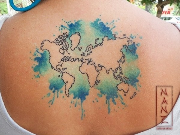 可爱的彩色世界地图背部纹身图案