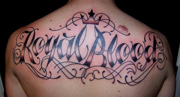 背部漂亮的黑色藤蔓英文字母纹身图案