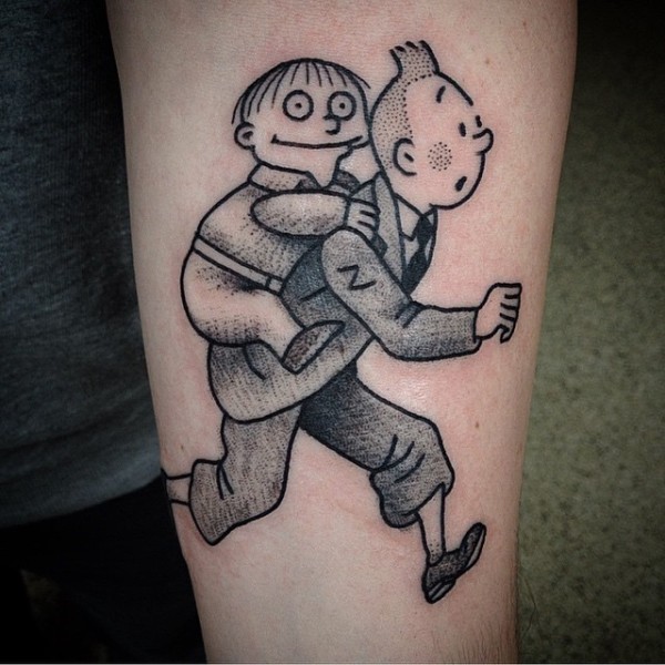小臂有趣的卡通黑色男孩点刺纹身图案