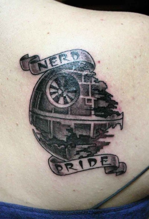 背部破碎的行星和字母纹身图案