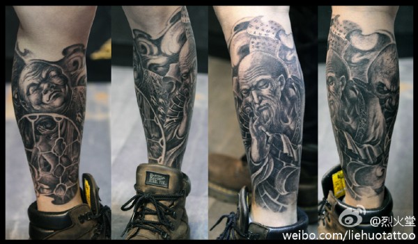 花腿纹身--一组大黑腿纹身图案作品欣赏