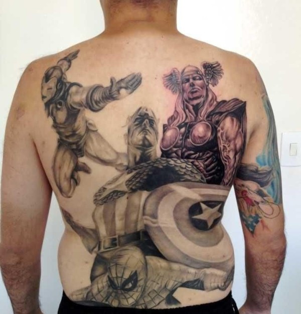 背部漫画风格各种超级英雄纹身图案