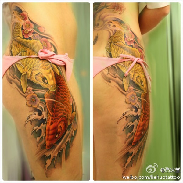 分享一款腰部时尚性感的蝶恋花纹身图案_腰部纹身图案大全_纹身图吧