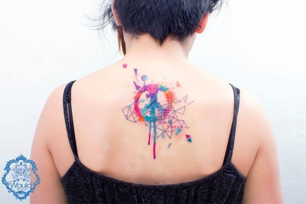 背部有趣的水彩符号与几何图形纹身图案