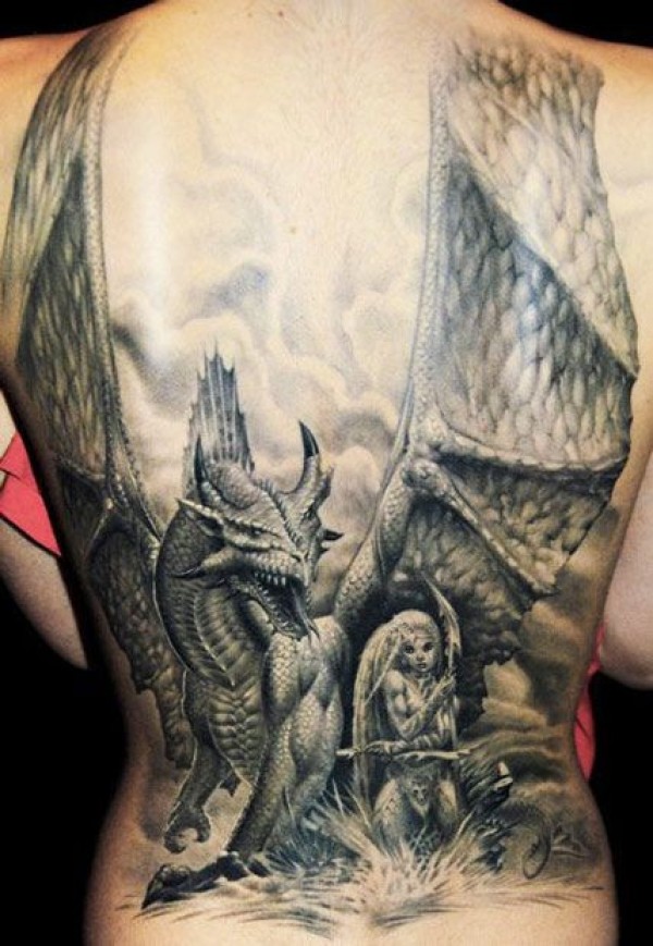 龙纹身手稿_一组老传统黑灰龙手稿纹身图案